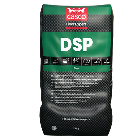 - Använd först ett Casco Floor Expert RR eller EF för att fylla i skarvar, gropar och jämna ut ojämnheter.