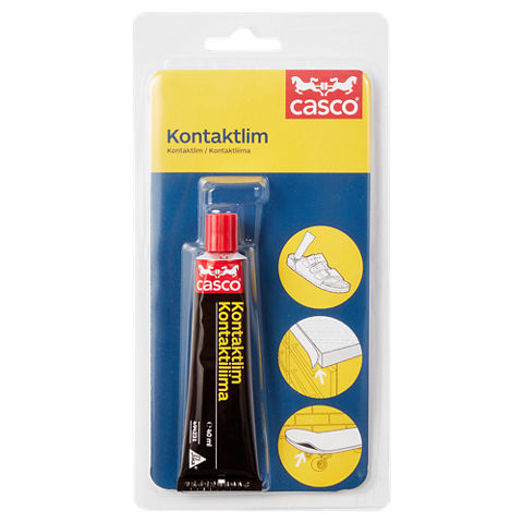 Ett ljust färgat tixotropt kontaktlim i en lösningsmedelsblandning utan toluen.